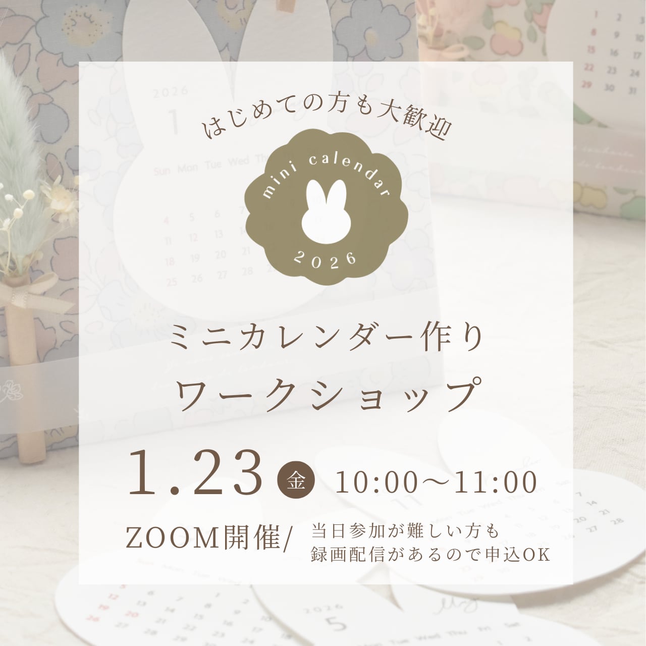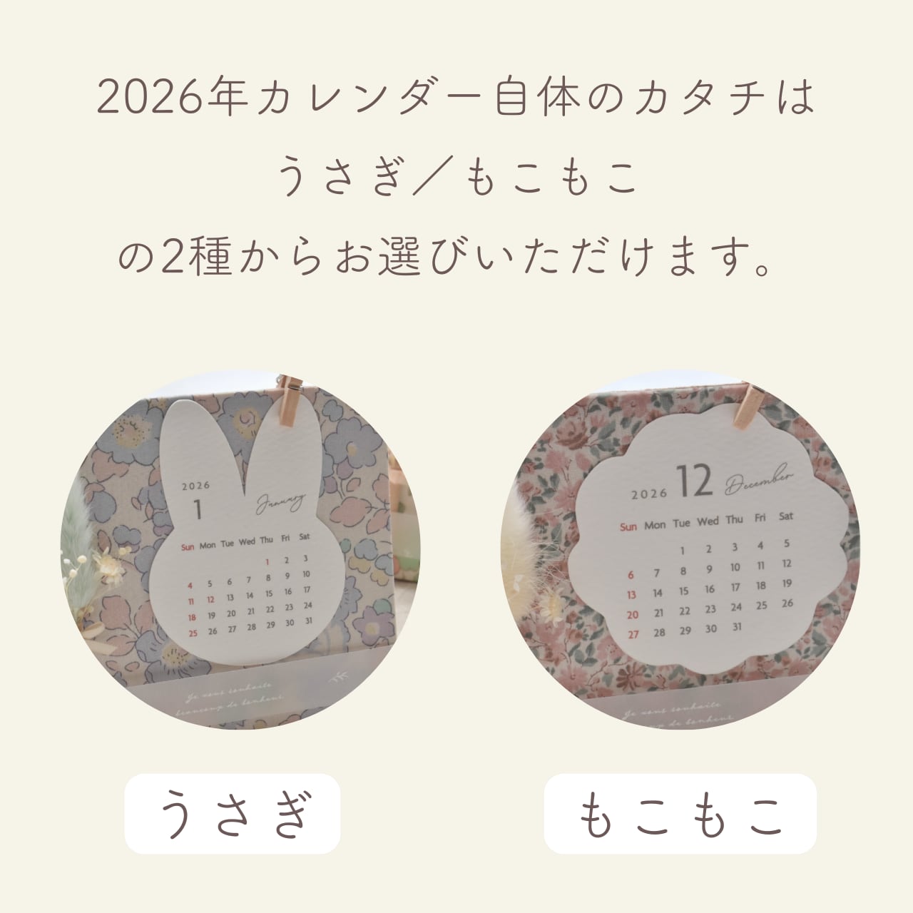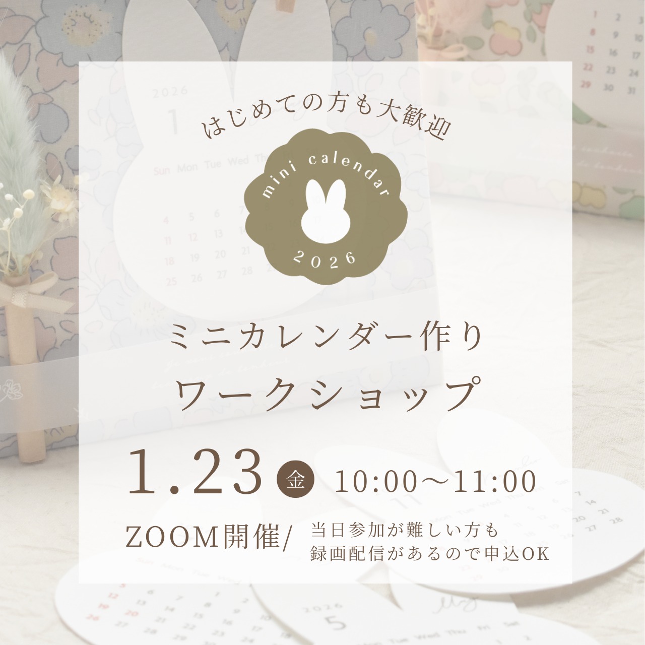 2026年カレンダーのみ(うさぎ/もこもこ)はワークショップ開催後、追加購入もできます(ご希望の方)